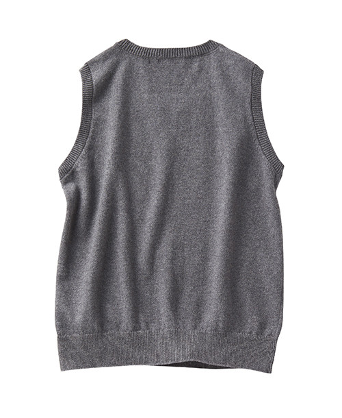 丸首の濃紺のベスト。