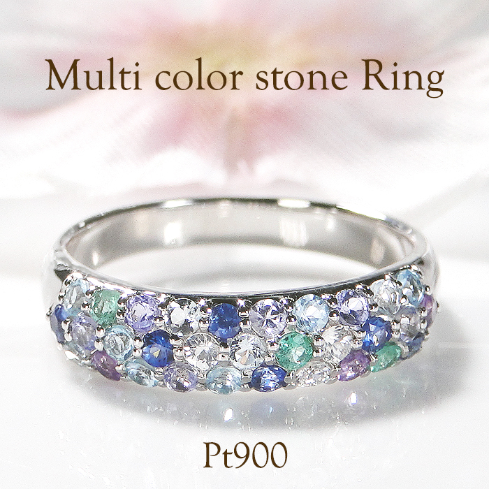 指輪 プラチナ PT900 マルチカラー パヴェリング サファイア エメラルド 花畑 ブルー 青系 誕生石 カラーストーン【f235-b-pt】※12号 ALPAZ111-12