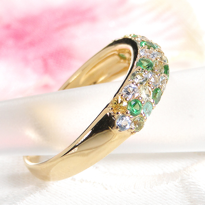 指輪 K18YG イエローゴールド マルチカラー パヴェリング エメラルド ペリドット 花畑 緑系 誕生石 カラーストーン【f235-g-k18yg】※5号 ALPAZ112-5