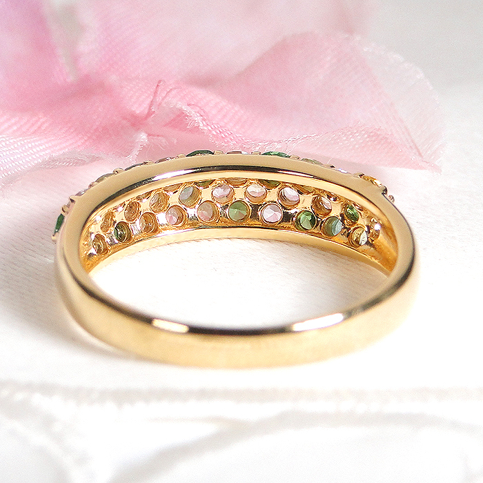 指輪 K18YG イエローゴールド マルチカラー パヴェリング エメラルド ペリドット 花畑 緑系 誕生石 カラーストーン【f235-g-k18yg】※14号 ALPAZ112-14