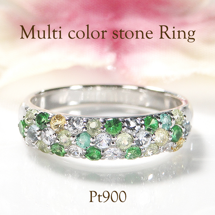 指輪 プラチナPT900 マルチカラー パヴェリング エメラルド ペリドット 花畑 緑系 誕生石 カラーストーン【f235-g-pt】※14.5号 ALPAZ113-14_5