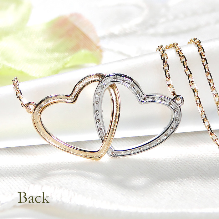 定番のハートモチーフネックレスを、プラチナとK18イエローゴールドの2種の地金の艶めきと、