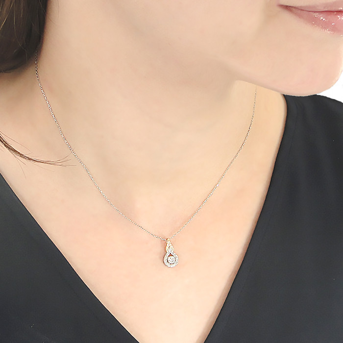 周囲を21石・トータル0.18カラットのダイヤで取り巻き、華やかなペンダントに仕上げました。