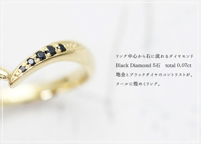 シャープなV字を描く曲線の中央から右側に、ブラックダイヤモンド5石 計0.07ctを留め、しっかりした存在感と力強さを表現しました。