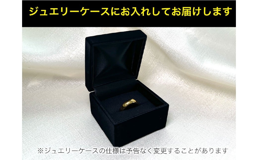 18金無垢で表面の磨き仕上げやリング内側の指通りのなめらかさも熟練職人のなせる逸品です。