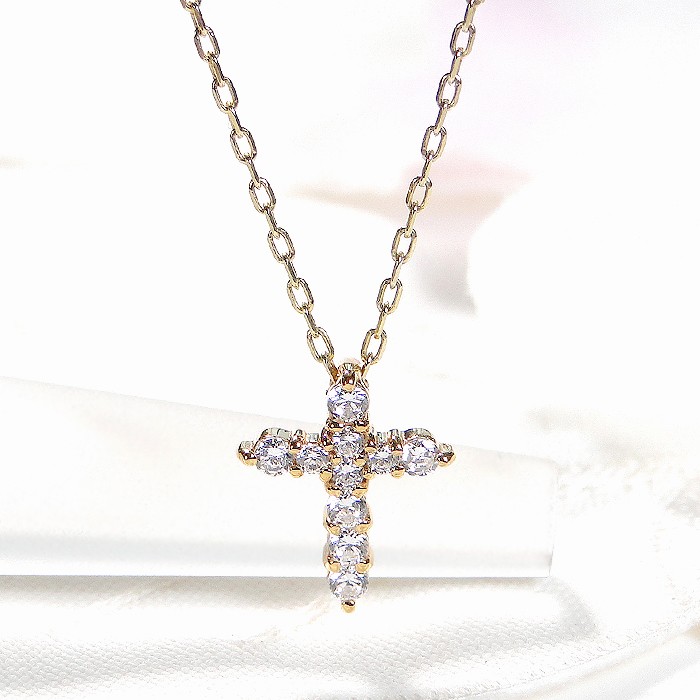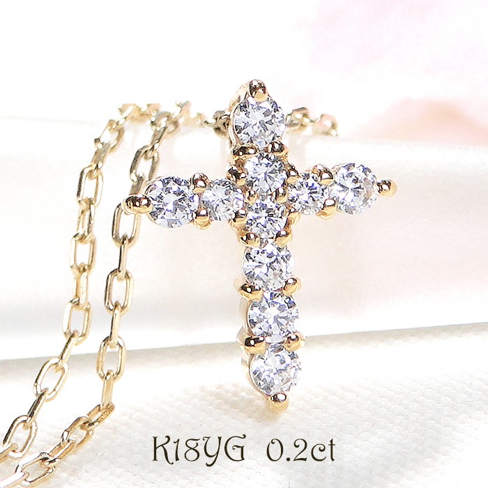 ネックレス K18YG イエローゴールド ダイヤモンド 0.2ct 10石 スイートテン クロス 十字架 ペンダント クリスマス 【f022-k18yg】ALPAZ185