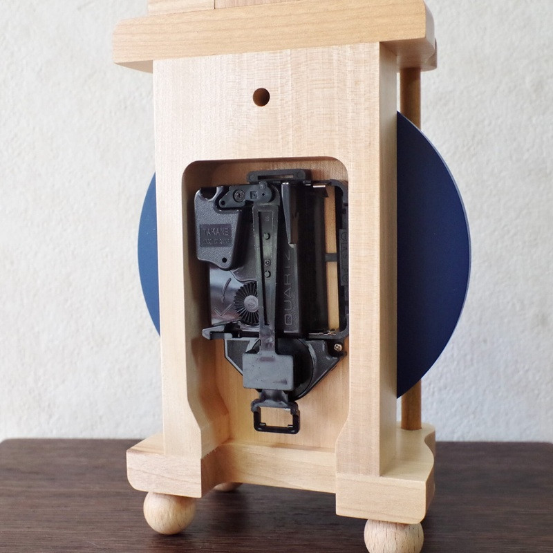 振り子を駆動させるのは単三電池1本内蔵のクォーツで、正確に時を刻みます。