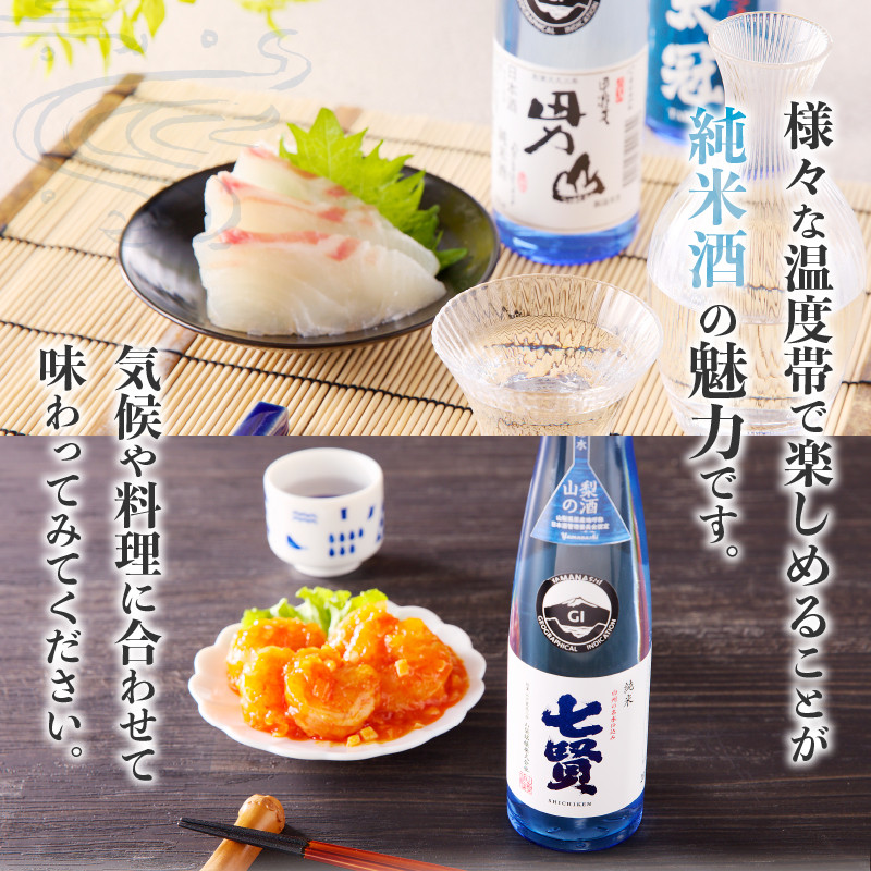 この「山梨県原産地呼称日本酒認定酒」となった純米酒を飲み比べてお楽しみいただけるセットです。