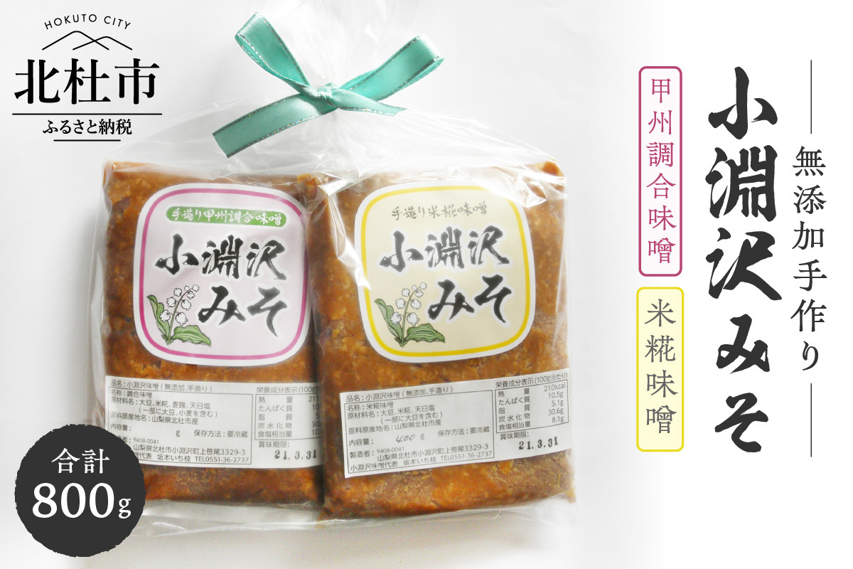 味噌 小淵沢味噌 味噌 米糀味噌 甲州調合味噌 無添加 手作り おためしセット 400g×2種 800g 2点セット 山梨県北杜市
