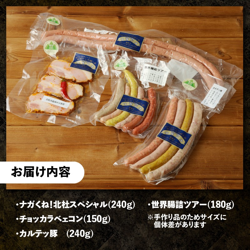 ウィンナー ソーセージ ベーコン 詰め合わせ 810g 4種類 セット オールポーク 高校生アイデア バーベキュー キャンプ パーティー 豚肉100% 天然腸 手作り 食べ比べ 食杜北杜 新特産品 山梨県 北杜市 白州