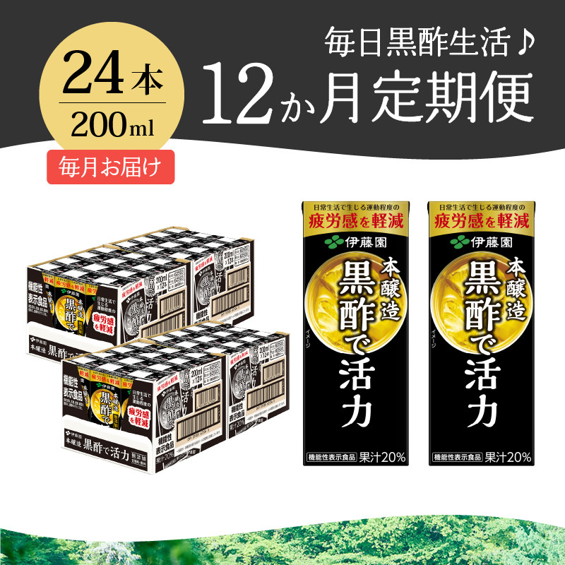 12カ月定期便 黒酢で活力 伊藤園 紙パック 1ケース24本×12カ月 200ml 黒酢 定期便 お楽しみ 米黒酢 大麦黒酢 ケース ドリンク 配達