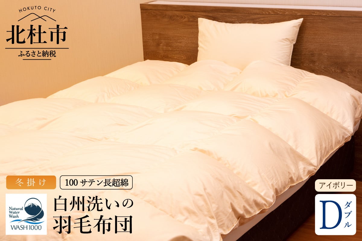 日本一の名水の里・白州で作られた羽毛布団。 羽毛布団(ダブル冬掛けアイボリー)高級100サテン使用、ハンガリーホワイトグース93% 白州天然水 ロイヤルゴールドラベル