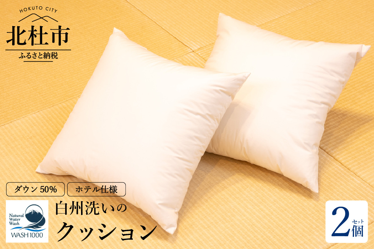 羽毛クッション 2個セット 45×45cm ダウン50% 600g 日本製 ホテル仕様 クッション 羽毛 白州洗いの羽毛クッション 新生活