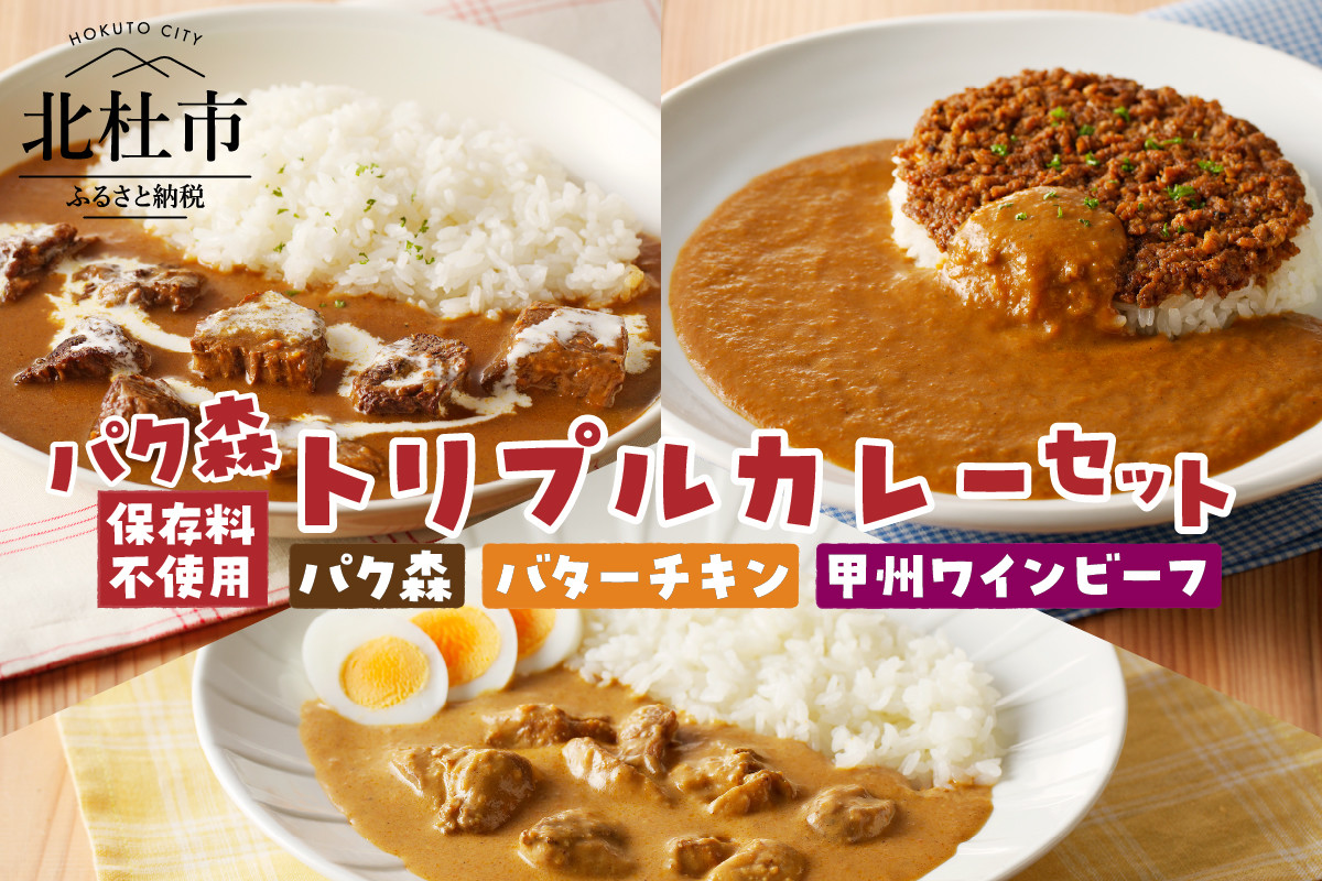 「安全な食材」と「美味しさ」にこだわった体に優しいカレー! パク森トリプルカレーセット(パク森・バターチキン・甲州ワインビーフ) カレー セット パク森 バターチキン 甲州ワインビーフ ビーフカレー