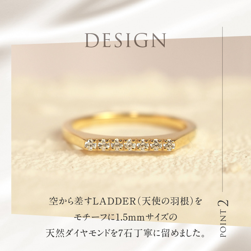 空から差すLADDER(天使の梯子)をモチーフに1.5mmサイズの天然ダイヤモンドを7石丁寧に留めました。