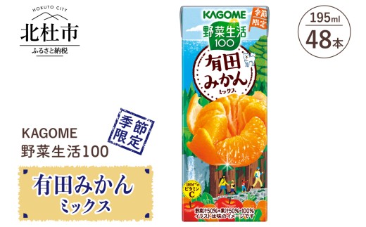 カゴメ 野菜生活100 有田みかんミックス 195ml 紙パック 48本入…