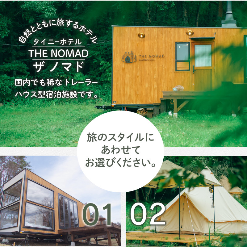 2022年春、雄大な南アルプスの山々を一望できる八ヶ岳南麓に広がる、約4200坪の大自然に誕生した新しい宿泊施設「ザ ノマド 八ヶ岳」のご宿泊代金の一部としてご利用可能なギフト券です。