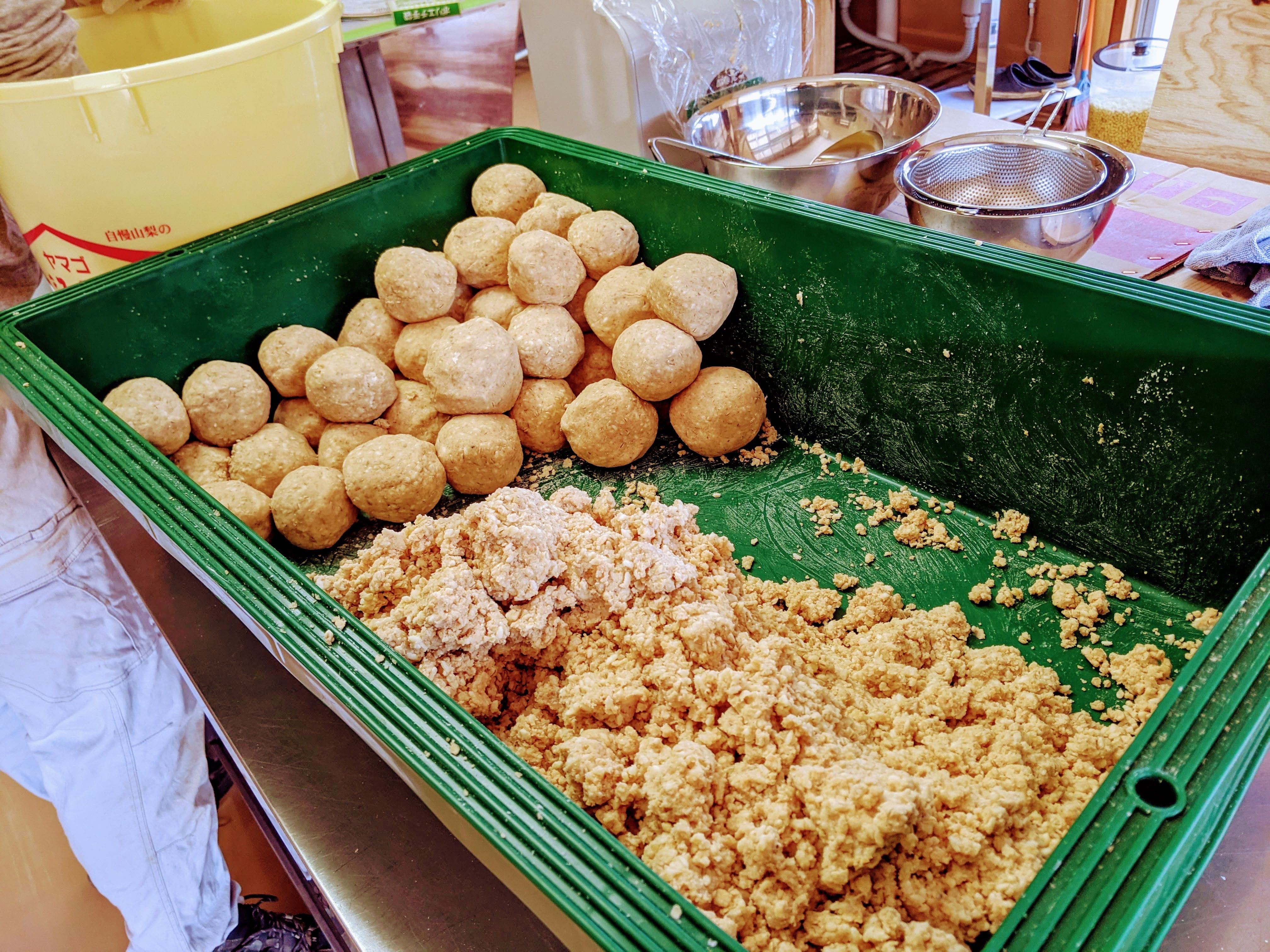 そして、その大豆を使い「味噌」を手づくりしようと思い立ちました。老舗のお味噌屋さんにお話を伺い、さまざまな資料をあたり、ともに取り組む仲間を見つけ、自宅離れの作業場をDIY改修し、保健所の許可を受け、味噌を仕込み、材料から自家製の「てづくりみそ」が仕上がりました。