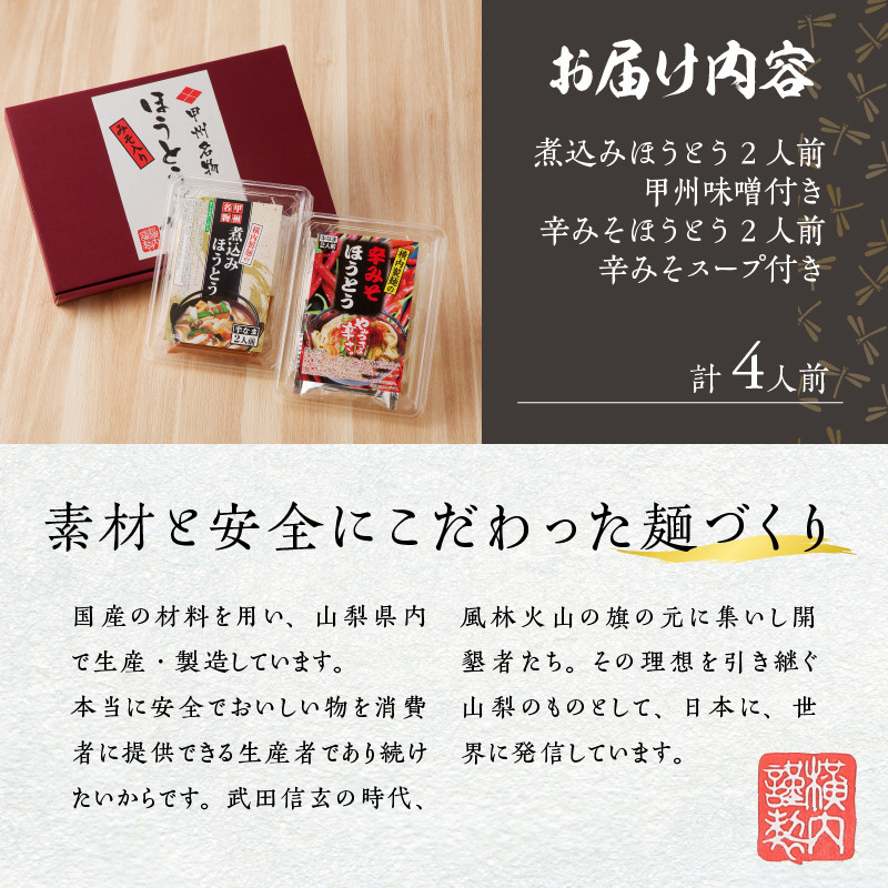 ほうとう セット 煮込み 辛みそ 2人前×2 特製甲州みそ付 特製辛みそスープ付 甲州名物 郷土料理 山梨 送料無料