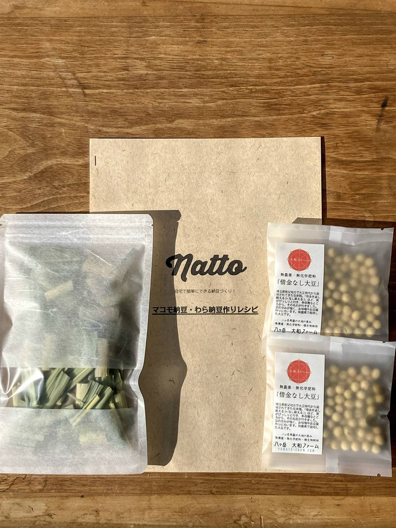 大和ファームが自然栽培した大豆とマコモを使い自分で作る納豆のセット!自由研究にも