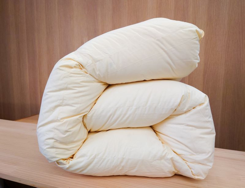 南アルプスの麓、白州にある自社工場(株式会社羽毛工房白州)にて、1枚1枚丁寧に職人が仕上げたリサイクル羽毛布団。