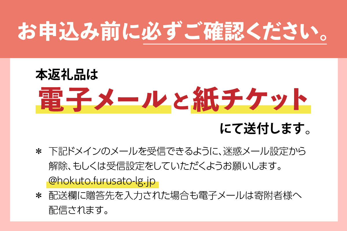 ※返礼品は電子メールおよび紙チケット送付の複合形式です。電子メール(ご予約用メール)は寄附者様へ配信されます。