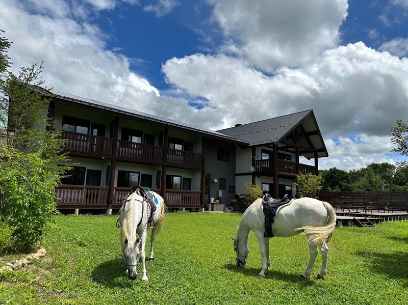 また馬の街、小淵沢のロッジ周辺は道を歩く馬との出会いや乗馬クラブ、牧場などふれあいの場が沢山ございます。