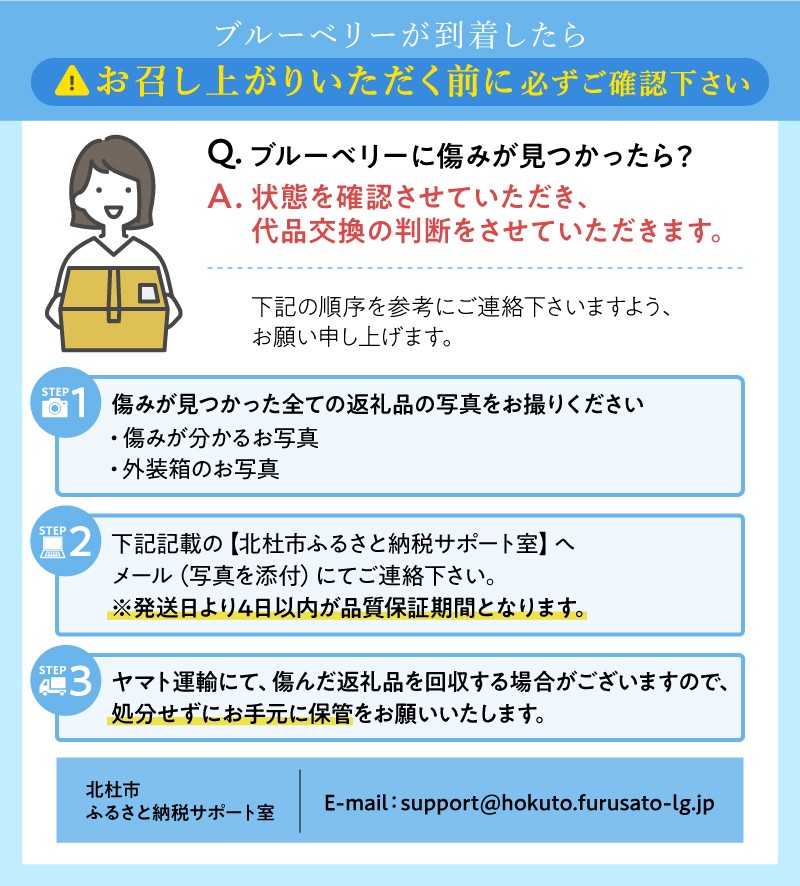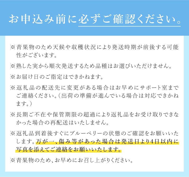 ※返礼品到着後すぐにブルーベリーの状態のご確認をお願いいたします。