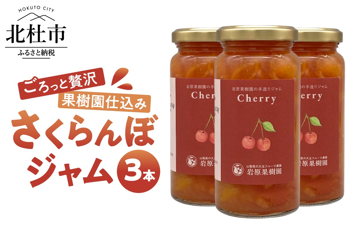ごろっと贅沢、果樹園仕込み 岩原果樹園のさくらんぼジャム(紅秀峰・佐藤錦)150ml×3本セット ジャム セット 手づくりジャム さくらんぼ 訳あり果実使用 大きめ果肉 保存料不使用 贈り物 ギフト 山梨県 北杜市
