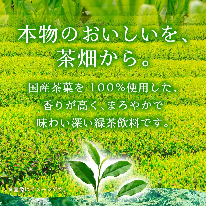 国産茶葉を100%使用した、香りが高く、まろやかで味わい深い緑茶飲料です。
