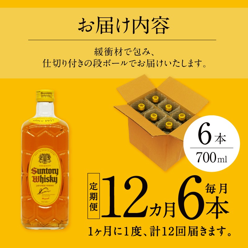 切らさない大容量、年間の頼もしさ 【12ヶ月定期便】サントリーウイスキー 角瓶 700ml×6本 白州蒸溜所 人気 ハイボール ロック 水割り お湯割り SUNTORY 角 洋酒 山梨県 北杜市 白州 南アルプス