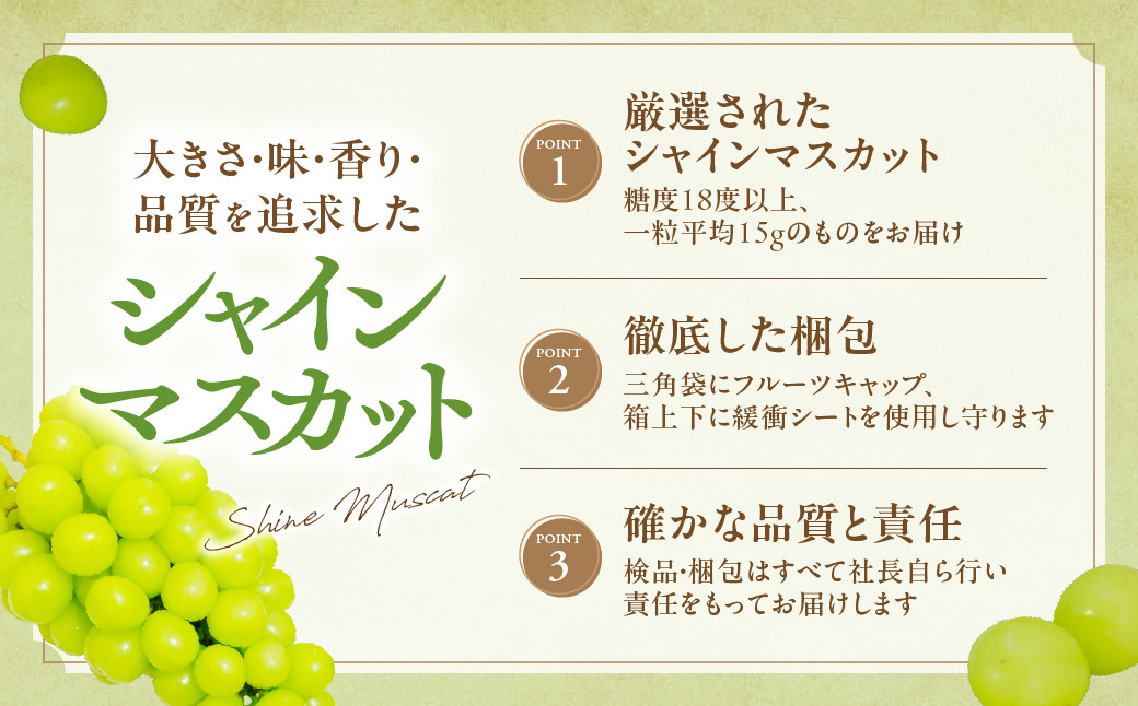 味や香り、色、大きさすべてにこだわりぬいた極上のシャインマスカット!