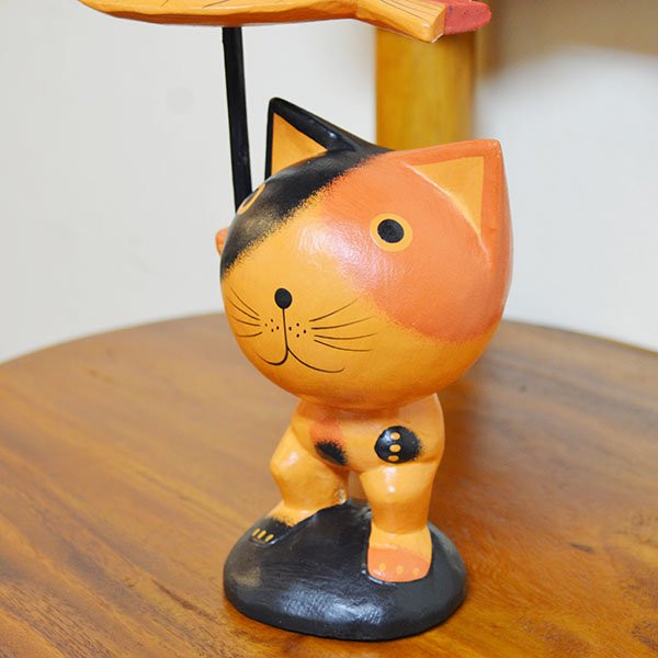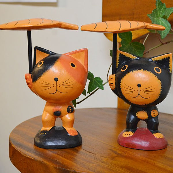 魚傘差しネコ(ブラック・三毛)※2色からお選びください