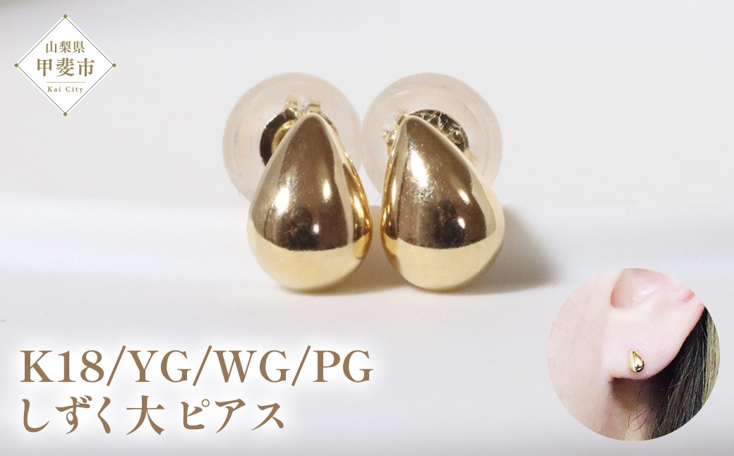 K18 しずく 大 ピアス 山梨 ピアス シンプルピアス K18 イエローゴールド ホワイトゴールド ピンクゴールド ジュエリー アクセサリー 山梨県 甲斐市 BQ-36