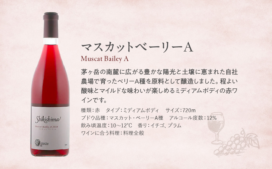 | 容量 | 赤ワイン マスカットベーリーA 720ml×1本 |