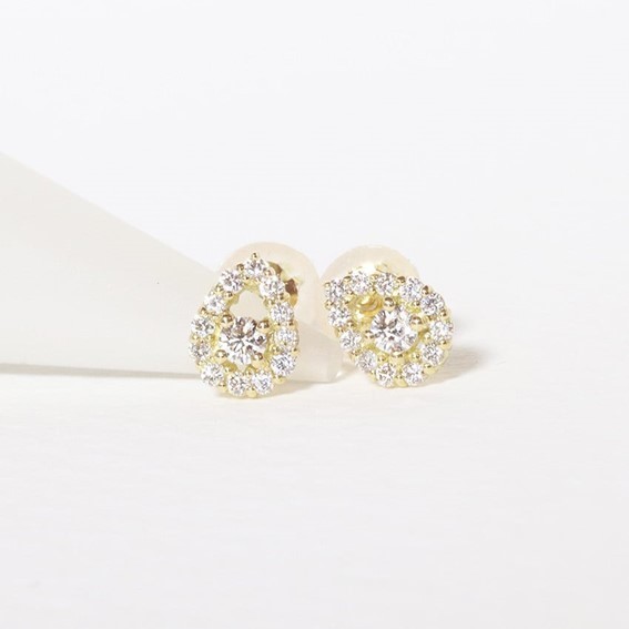 可愛らしいしずく型デザインの取り巻きダイヤモンドピアス。