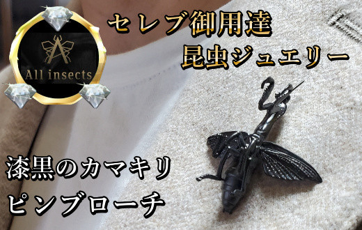 カマキリピンブローチ ブラックカラー All insects 【セレブ御用達】【世界30個限定】今、世界中から熱視線を浴びている幻の昆虫アートジュエリー