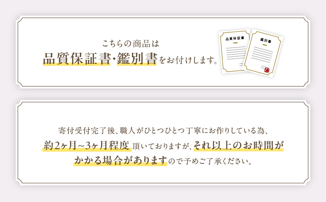 | 発送期日 | ※ご注文頂いてからの製造のためお届けまでに2か月から3か月ほど頂きます。 |