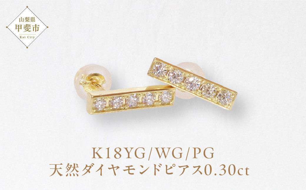 K18 0.30ctラインダイヤモンドピアス K18 イエローゴールド ピアス ホワイトゴールド ピンクゴールド ダイヤモンド ダイヤ0.15ct×2 カラット 天然ダイヤモンド ジュエリー アクセサリー 山梨県 甲斐市 BQ-144