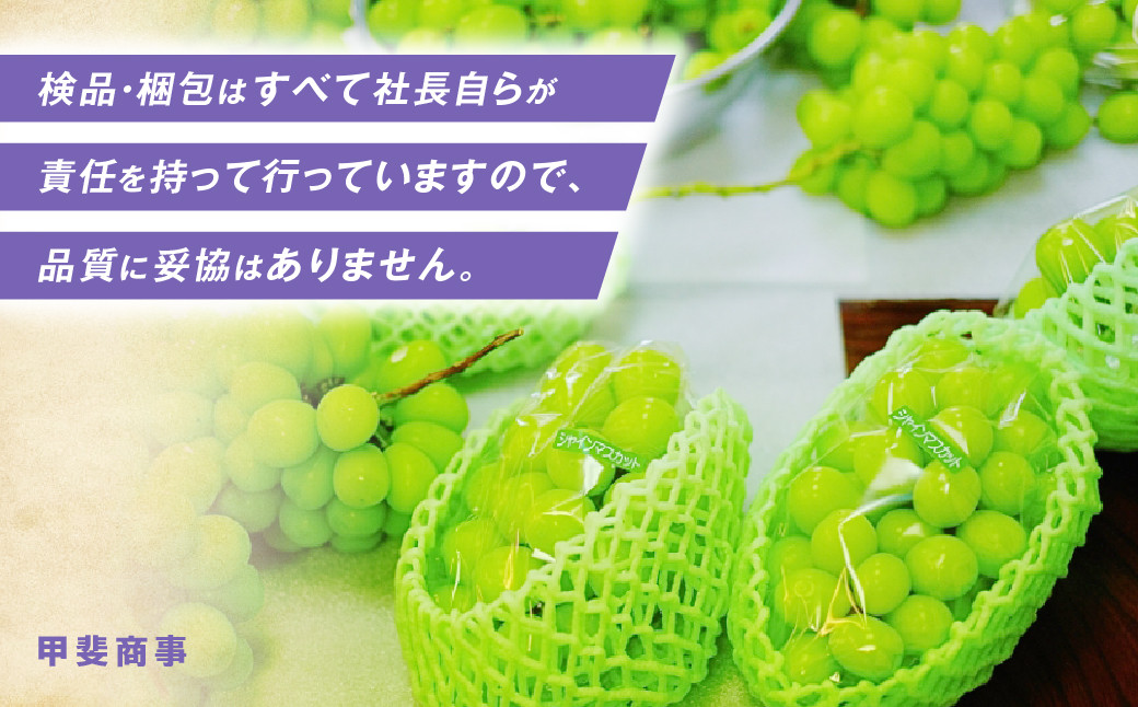 「秀」品であり、「A」ランク以上の間違いない山梨のシャインマスカットをお届け!