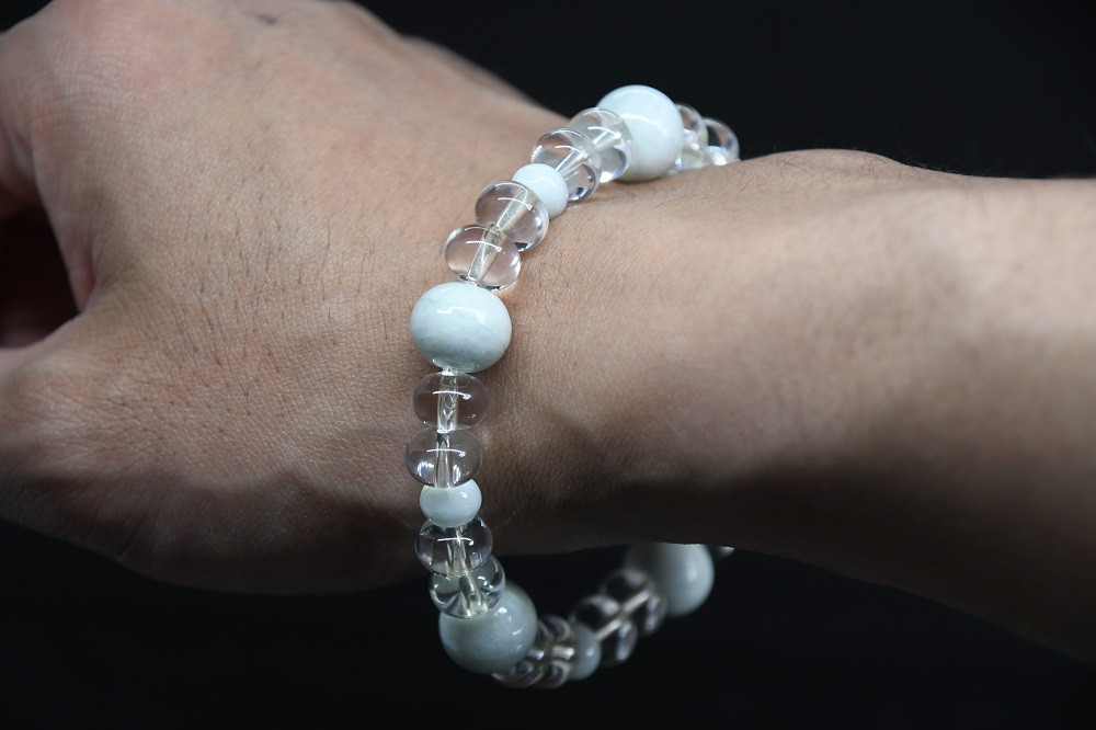水晶手摺り平玉糸魚川ヒスイ仕立ブレスレット