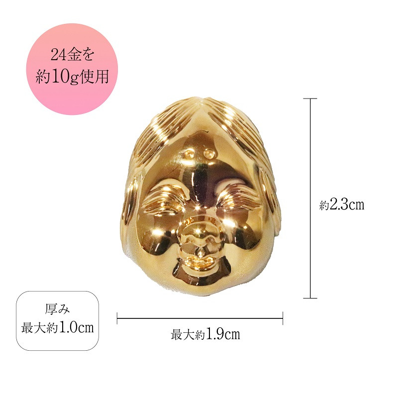 | 容量 | ・純金 K24(24金) おかめひょっとこ ・品質保証書 ・木箱 【素材】 ・K24(24金 純金) 【サイズ】 画像をご参照ください。 【重量】 おかめ 約10g ひょっとこ 約12g ※手作りの過程もある為、重量が前後します。 ご了承ください。 【刻印】 「純金」「K24」 |