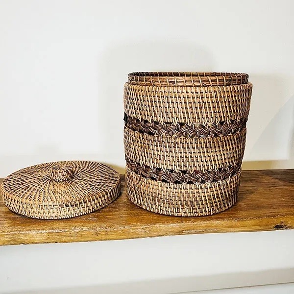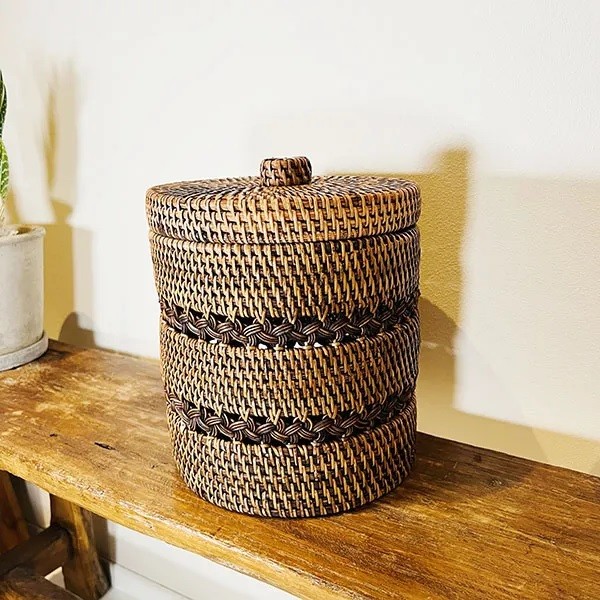 | 容量 | サイズ:幅22cm奥行22cm 高さ24cm 内寸サイズ:幅18cm奥行18cm深さ19cm 材質:ラタン |