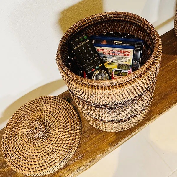 ラタン製なので強度も十分にあり、水周りにもお使いいただけます