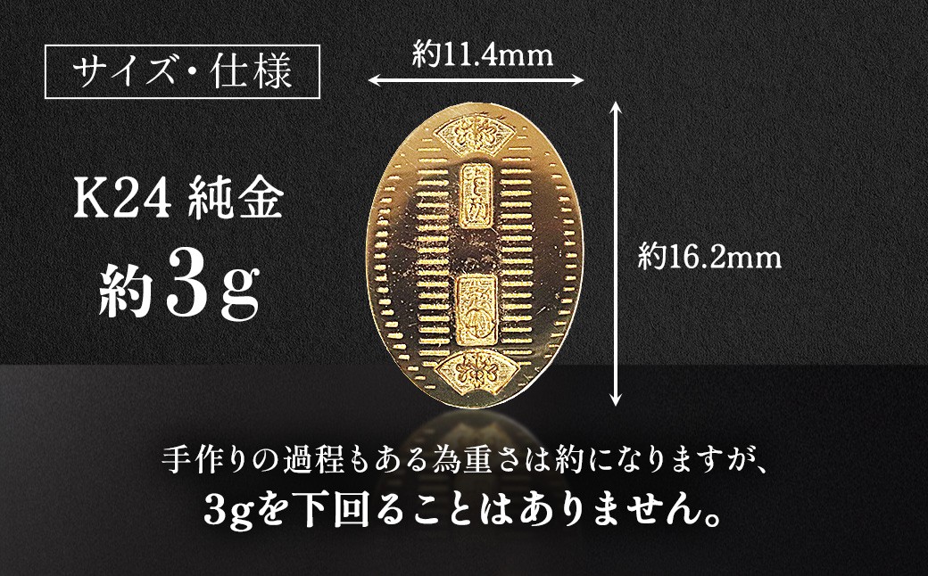 純金 K24(24金)小判 3g 金 純金 24K 24金 ゴールド BQ-234