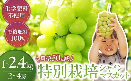 【2026年/令和8年発送】特別栽培 減農薬 大粒 シャインマスカット 約2.4㎏ 山梨県産 国産 産地直送 人気 おすすめ 贈答 ギフト お取り寄せ フルーツ 果物 くだもの ぶどう ブドウ 葡萄 新鮮 甘い 皮ごと 甲斐市 CF-5