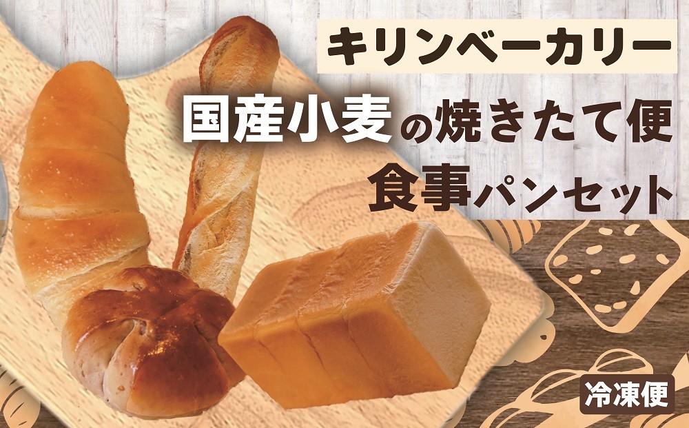 山梨県甲斐市の「キリンベーカリー」が自信を持ってお届けする「~国産小麦の焼き立て便~ 食事パンセット」です。
