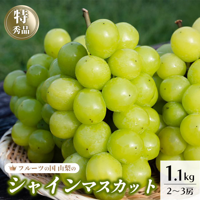 ももぶどう日本一の郷笛吹市!! 【2026年発送★先行予約】シャインマスカット 1.1kg以上 2房~3房 154-008 | フルーツ 果物 高評価 人気 ランキング おすすめ 甘い 美味しい デザート 数量限定 送料無料 山梨県産 笛吹市 種なしぶどう 「販売」 KEIPE株式会社