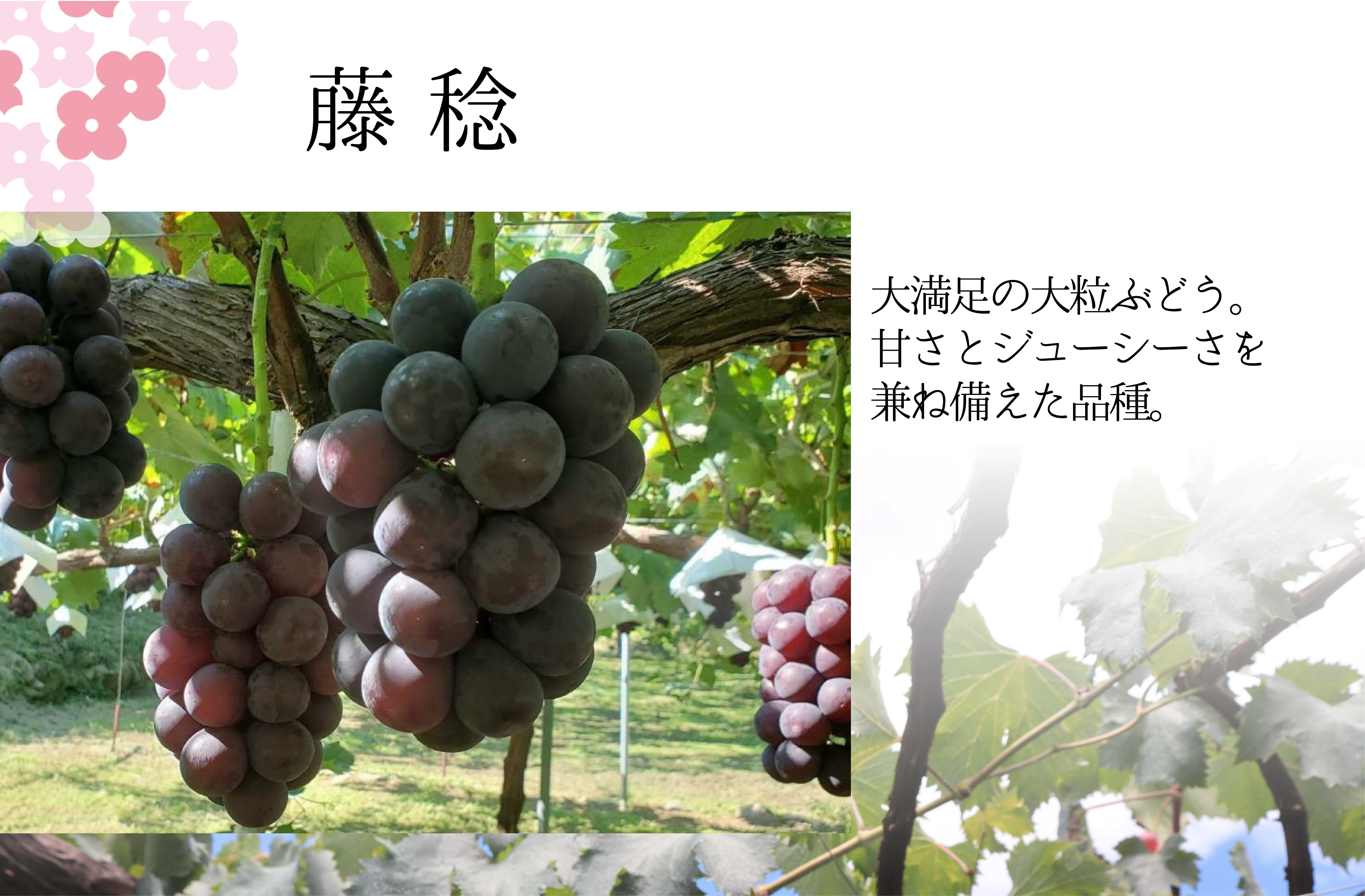 藤稔は大きな粒が特徴的で、ボリューム感たっぷりの贅沢なぶどうになっています。
