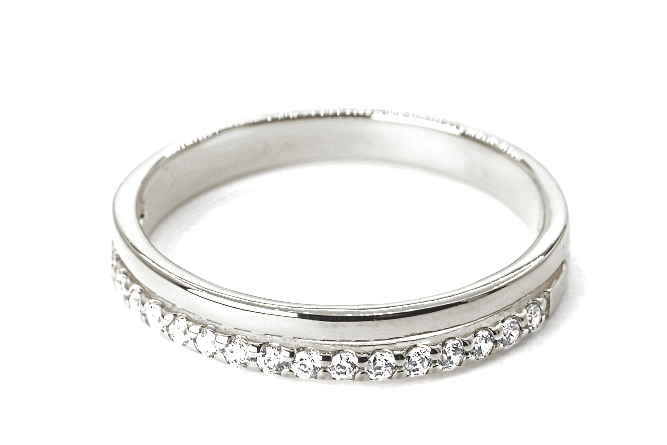 ダイヤモンドのエタニティリングと、地金のリングを重ね付けしたようなデザインのリングになります。